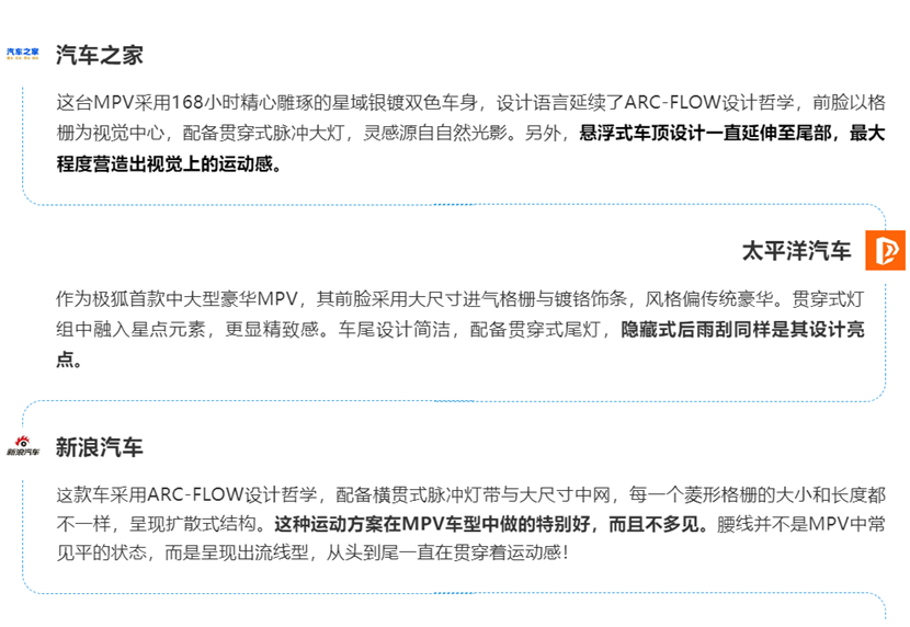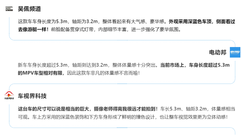 尺寸是MPV的核心竞争力,新车以“大尺寸+巧设计”,收获媒体对“空间格局”的高度认可: